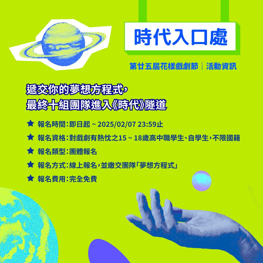 ✿ 以「團隊」方式報名,撰寫團隊的《夢想方程式》,由青藝盟審核後篩選出最終入選「10組團隊」。
